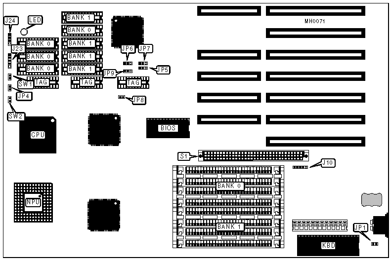 | | CMOS memory clear | JP2 | pins 1 & 2 |