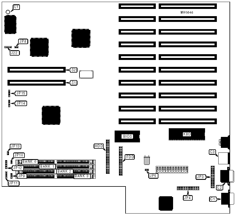 | Floppy drive | FDD | Reset switch | JP13 |