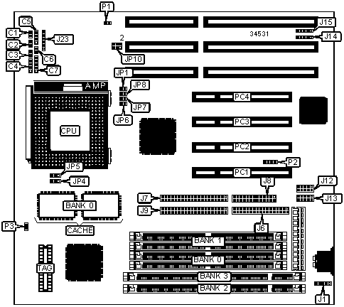| Note: Board accepts EDO memory. Banks are interchangeable. |