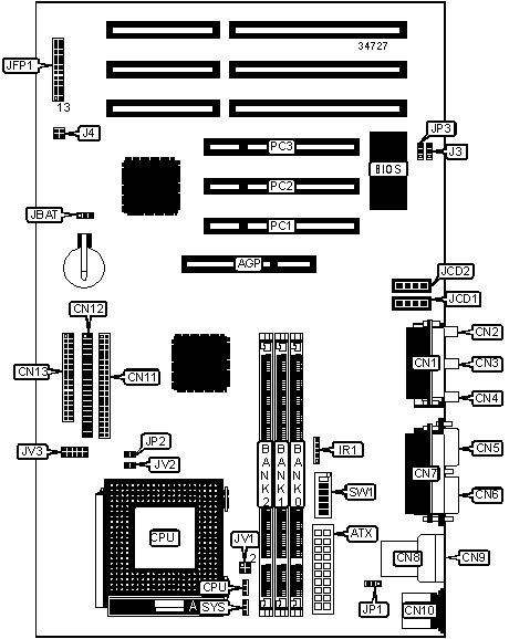| Parallel port | CN7 | IDE interface | JFP1/pins |