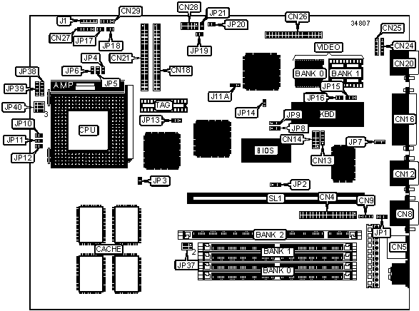 | Note: Board accepts EDO & SDRAM memory. Banks 0 & 1 are |