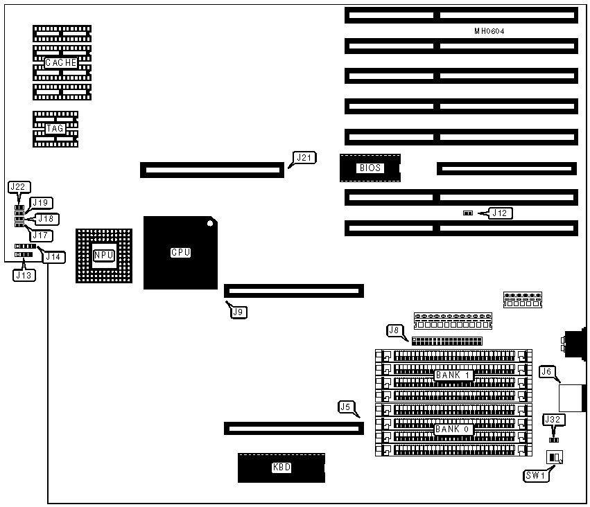 | Bus mouse port | J6 | Turbo switch | J18 |