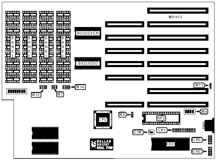 | 640KB | (8) 41256 | (8) 4164 | Off | On |