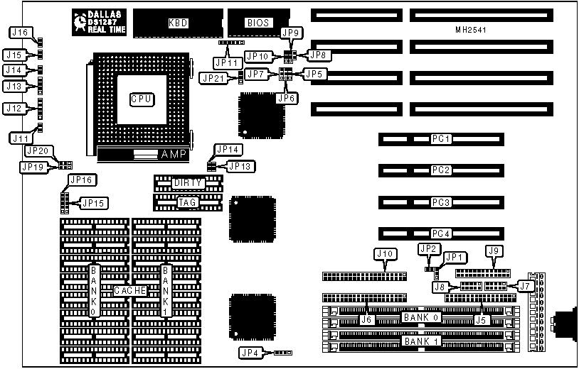 | Parallel port | J9 | Turbo switch | J16 |