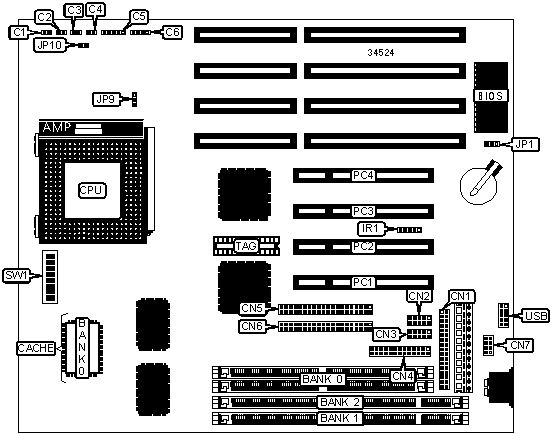 | Floppy drive | CN1 | 32-bit PCI slots | PC1 – |
