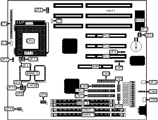 | | CMOS memory clear | JP3 | Pins 2 & 3 |