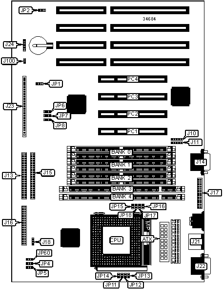 | CPU fan power | J18 | SCSI interface | J100 |