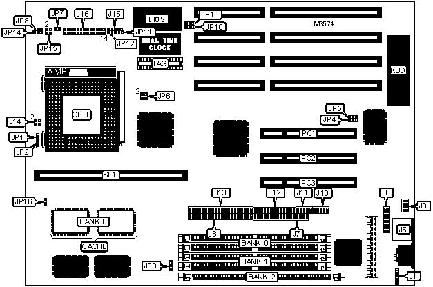 | Note: Board accepts EDO memory. Bank 2 accepts DIMM |