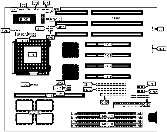 | Note: Board accepts EDO memory. Banks are interchangeable. |
