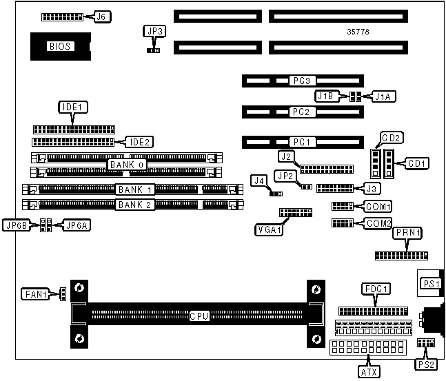 | | CMOS memory clear | JP3 | Pins 2 & 3 |