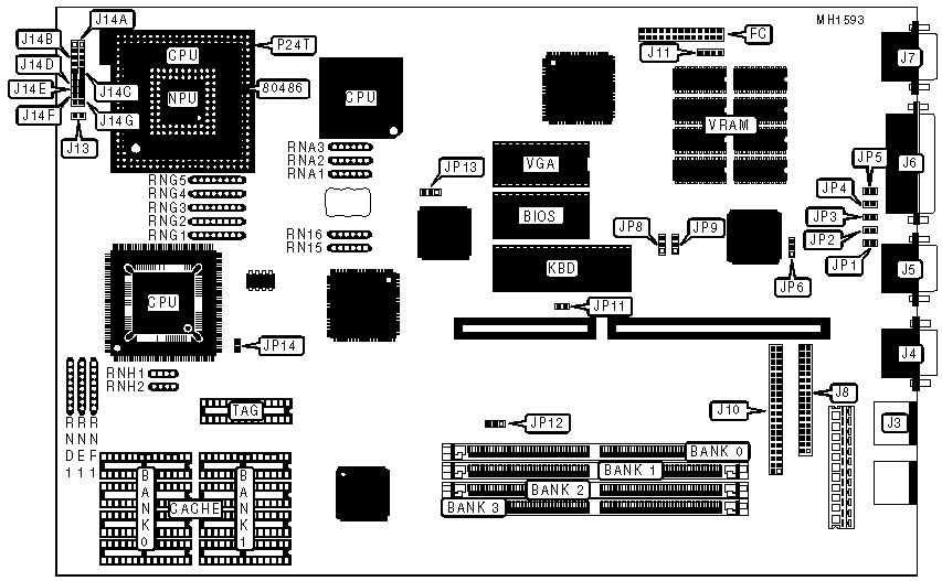 | | CMOS memory clear | JP13 | Pins 1 & 2 |