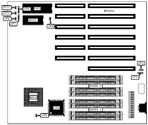| | CMOS memory clear | JP3 | pins 2 & 3 |