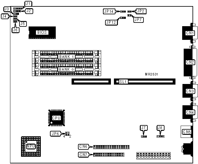 | PS/2 mouse port | CN5 | Turbo LED | J6 |