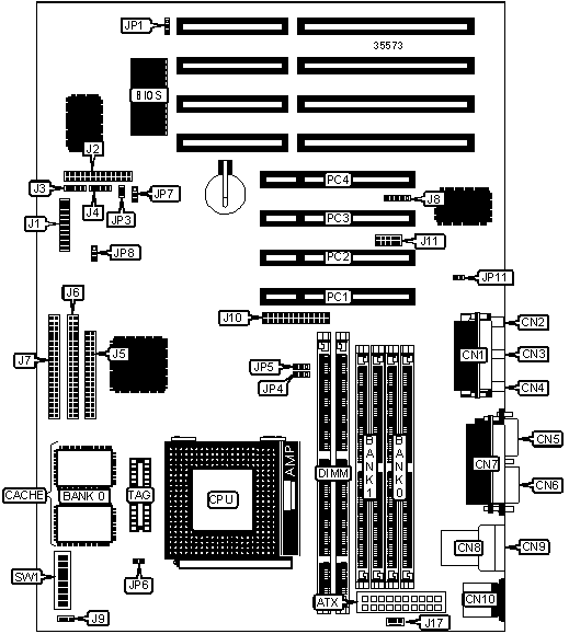 | | CMOS memory clear | JP8 | Pins 2 & 3 |