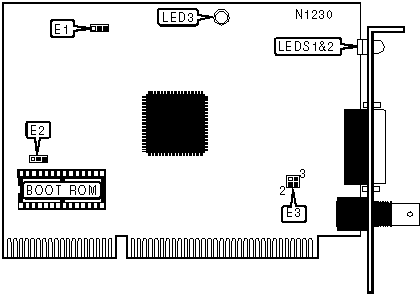 | LED3 | Red | On | Network collision detected |