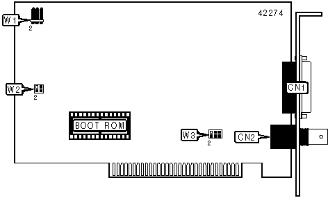 | AUI transceiver via DB-15 | CN1 | RG-58A/U 50ohm | CN2 |