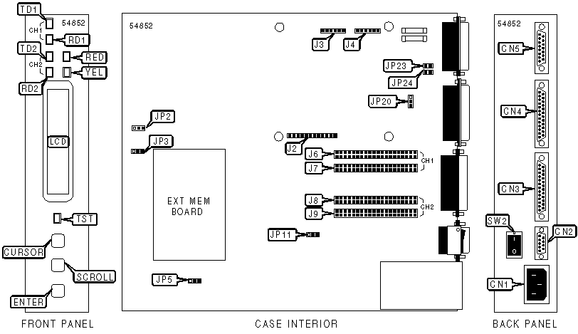 | 25-pin DTE/DCE port | CN4 | Power switch | SW2 |