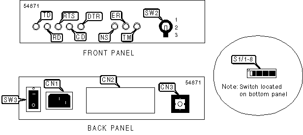 | DTE/DCE port | CN2 | Power switch | SW3 |