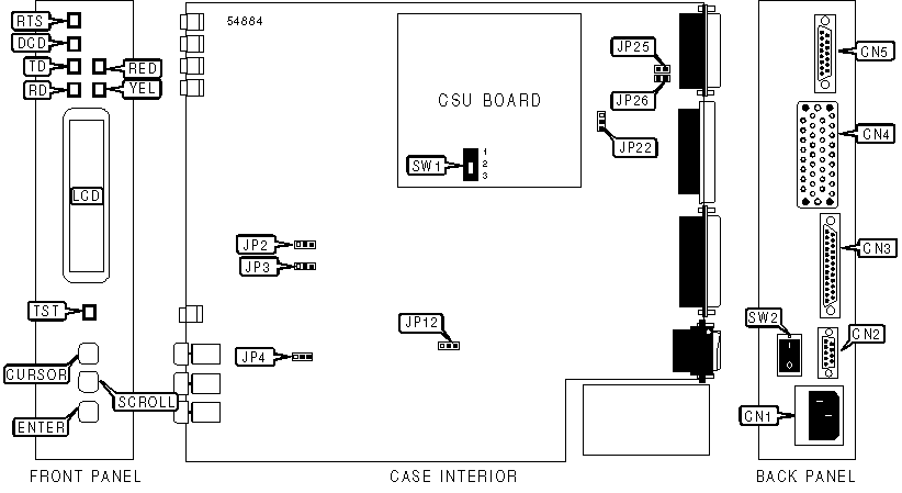 | DCE/DTE port (25-pin | CN3 | Power switch | SW2 |
