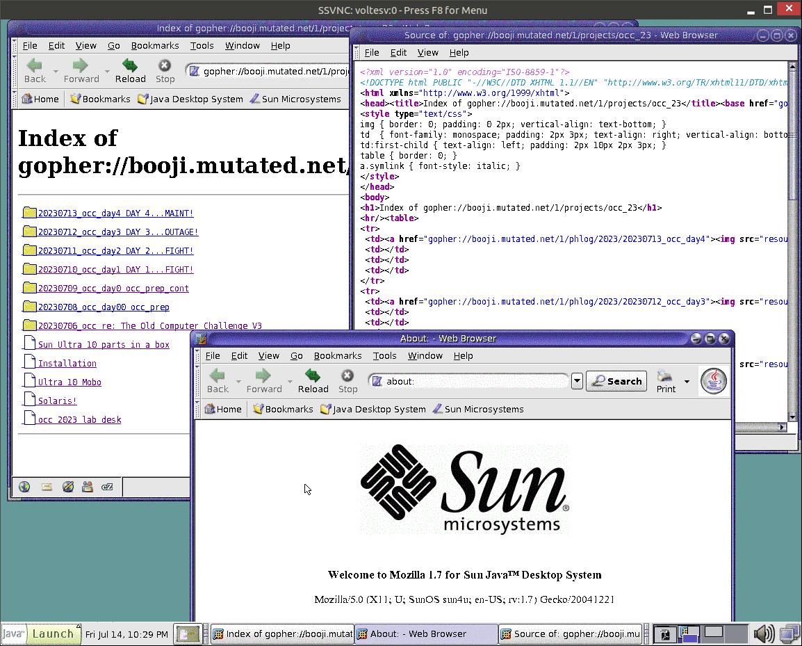 fake gopher in mozilla/old firefox, openmic dj talk, vm,