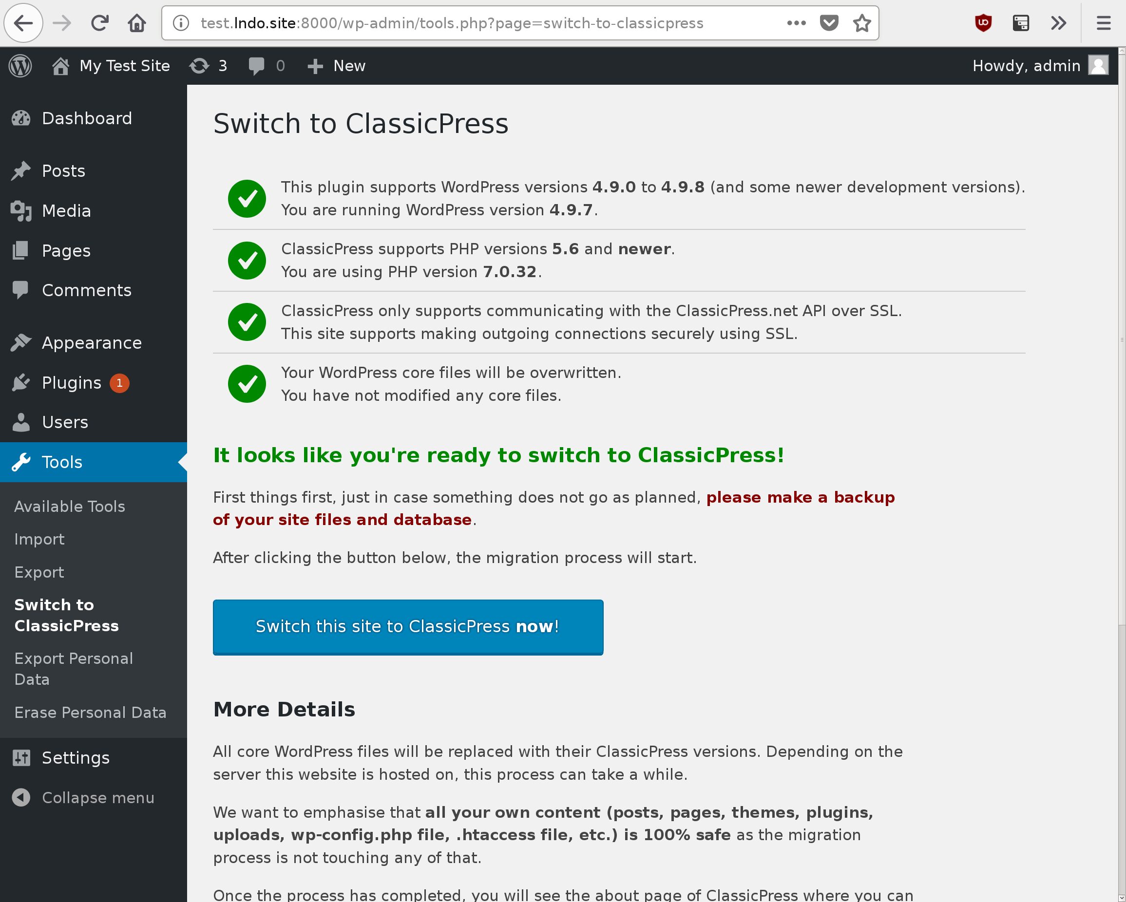Switching from WordPress to ClassicPress should be a non-destructive, 100%
