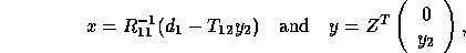 $key = q/{displaymath}x=R^-1_11(d_1-T_12y_2)quadmboxandquady=Z^Tleft(arrayc0y_2arrayright),{displaymath}/;