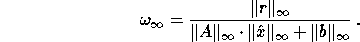 $key = q/{displaymath}omega_infty=frac|r|_infty|A|_inftycdot|hatx|_infty+|b|_infty;.{displaymath}/;