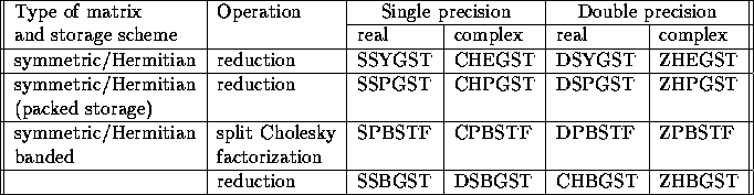 $key = q/{table}[ht]labeltabdrivegeigcentertabular||c|l||l|l||l|l||hlineTypeof;html_special_mark_amp;Functionandstoragescheme;html_special_mark_amp;multicolumn2c||Singleprecision;html_special_mark_amp;multicolumn2c||Doubleprecisioncline3-6problem;html_special_mark_amp;;html_special_mark_amp;real;html_special_mark_amp;complex;html_special_mark_amp;real;html_special_mark_amp;complexhlinehlineGSEP;html_special_mark_amp;simpledriver;html_special_mark_amp;SSYGVindexSSYGV;html_special_mark_amp;CHEGVindexCHEGV;html_special_mark_amp;DSYGVindexDSYGV;html_special_mark_amp;ZHEGVindexZHEGV;html_special_mark_amp;simpledriver(packedstorage);html_special_mark_amp;SSPGVindexSSPGV;html_special_mark_amp;CHPGVindexCHPGV;html_special_mark_amp;DSPGVindexDSPGV;html_special_mark_amp;ZHPGVindexZHPGV;html_special_mark_amp;simpledriver(bandmatrices);html_special_mark_amp;SSBGVindexSSBGV;html_special_mark_amp;CHBGVindexCHBGV;html_special_mark_amp;DSBGVindexDSBGV;html_special_mark_amp;ZHBGVindexZHBGVhlinehlineGNEP;html_special_mark_amp;simpledriverforSchurfactorization;html_special_mark_amp;SGEGSindexSGEGS;html_special_mark_amp;CGEGSindexCGEGS;html_special_mark_amp;DGEGSindexDGEGS;html_special_mark_amp;ZGEGSindexZGEGS;html_special_mark_amp;simpledriverforeigenvaluesvectors;html_special_mark_amp;SGEGVindexSGEGV;html_special_mark_amp;CGEGVindexCGEGV;html_special_mark_amp;DGEGVindexDGEGV;html_special_mark_amp;ZGEGVindexZGEGVhlinehlineGSVD;html_special_mark_amp;singularvaluesvectors;html_special_mark_amp;SGGSVDindexSGGSVD;html_special_mark_amp;CGGSVDindexCGGSVD;html_special_mark_amp;DGGSVDindexDGGSVD;html_special_mark_amp;ZGGSVDindexZGGSVDhlinetabularcenter{table}/;