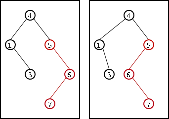 Hemos visto cómo restaurar la propiedad de equilibrio cuando se presentan desequilibrios "hacia la izquierda" o "hacia la derecha" luego de realizar inserciones en un árbol AVL. Sin embargo y como veremos, pueden ocurrir "desequilibrios en zig-zag", es decir desequilibios que no son ni a la derecha ni a la izquierda como es el caso de los árboles de Figure 10.