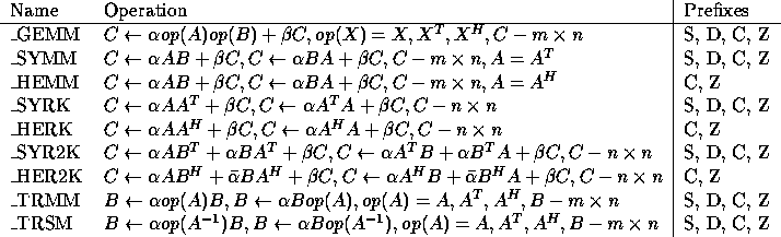 _TRMM ( SIDE, UPLO, TRANSA,        DIAG, M, N,    ALPHA, A, LDA, B, LDB )                S, D, C, Z