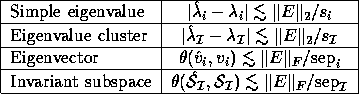 Table 4.6: Global error bounds for the nonsymmetric eigenproblem