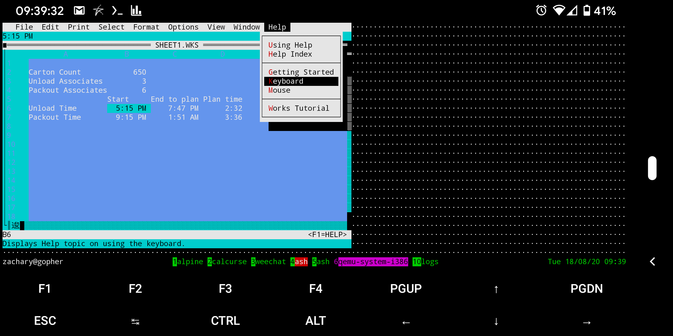 (IMG) Screenshot of MS Works inside tmux with termux.