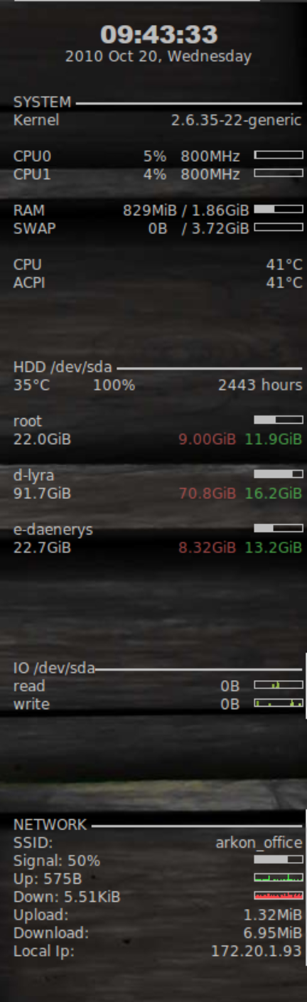 (TXT) Minimal Conky with HDD data, nVidia core temperature and Dell fan speed