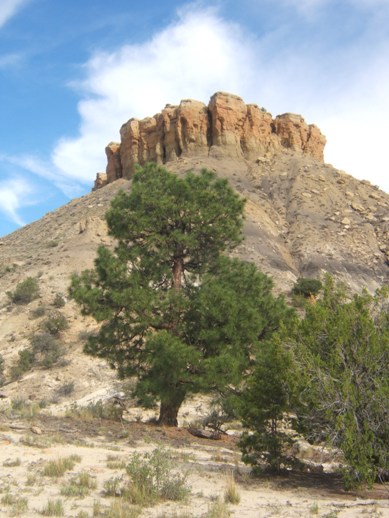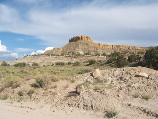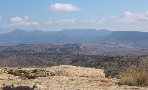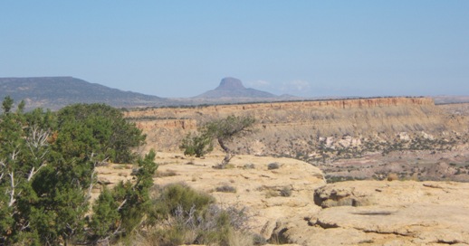 The view to the West, with Cabezon, a volcanic plug, on the horizon.