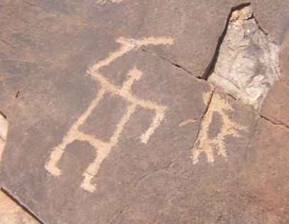Nearby are some petroglyphs, on horizontal rock at the edge of