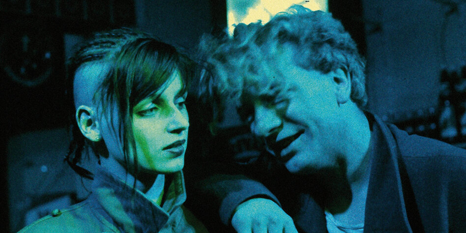 (IMG) Bild: Alles ist in Blau und Rot getaucht und sagt: „Irgendwie Kunst.“ Christiane F. und F.M. Einheit in „Decoder“.