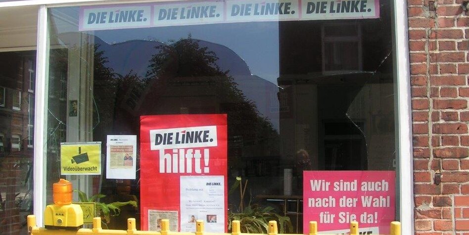 Täter die Frontscheibe des Parteibüros der Linken in Neumünster ein. Es ist