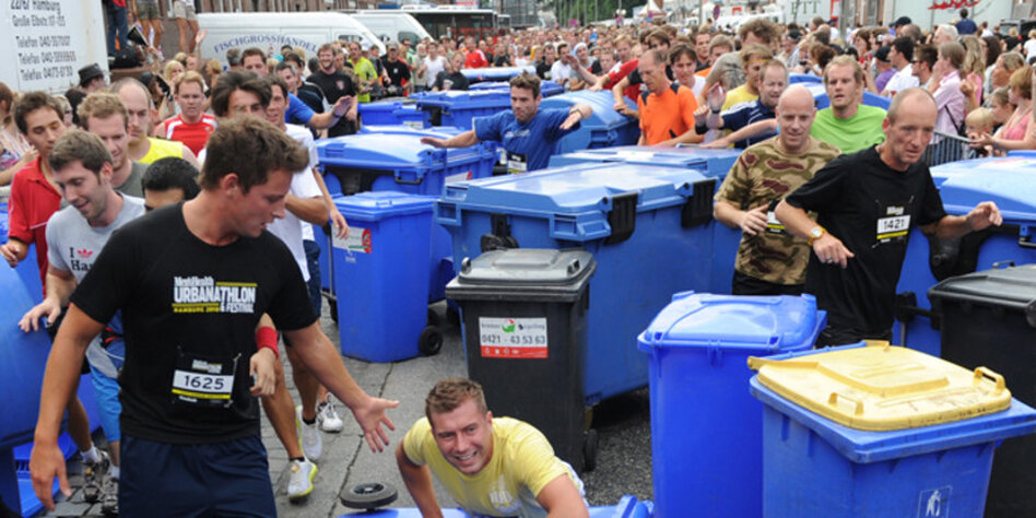 (IMG) Bild: Und jetzt über die Mülltonnen: Urbanathlon in Hamburg.