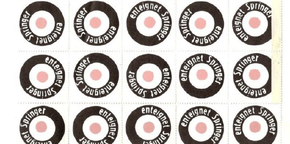 (IMG) Bild: Klebemarken mit der Aufschrift "Enteignet Springer"
