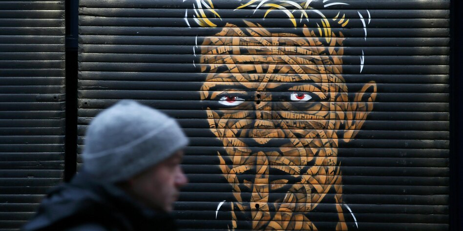 (IMG) Bild: Bowie-Portrait in einem Schaufenster im Londoner Stadtteil Brixton am 11. Januar 2016