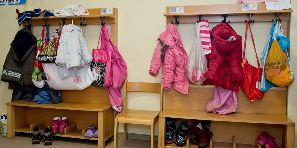 (IMG) Bild: Geschlossene Gesellschaft? Jacken in einem deutschen Kindergarten