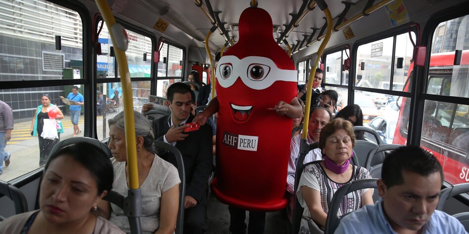 (IMG) Bild: Immer schön safe bleiben: Beim Internationalen Kondomtag werden in Lima Verhüterli verteilt