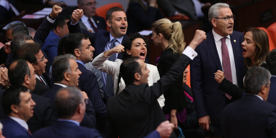 (IMG) Bild: Umstrittene Entscheidung: türkische Abgeordnete rufen Slogans im Parlament