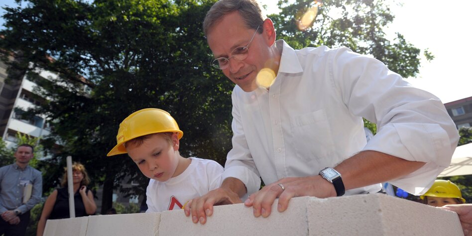 (IMG) Bild: Würde wohl am liebsten selbst ein paar Wohnungen bauen: Michael Müller auf einer Kinderbaustelle