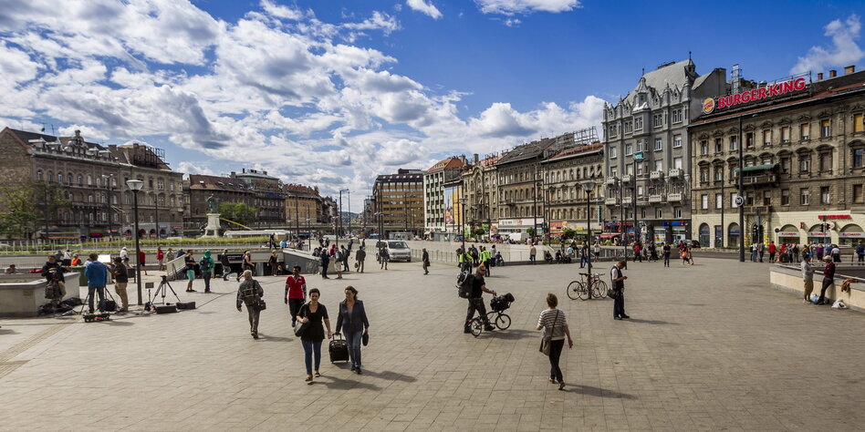 Keleti ein. Mit seinem luftigen Stahl-Glas-Kuppeldach und den prunkvollen