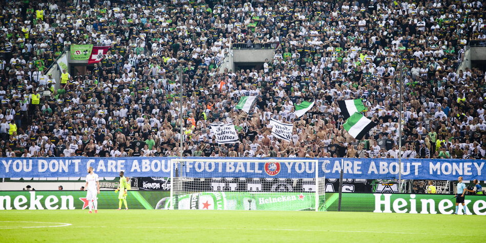(IMG) Bild: Gladbachs Fans bringen es auf den Punkt: „You don't care about football. You care about money“