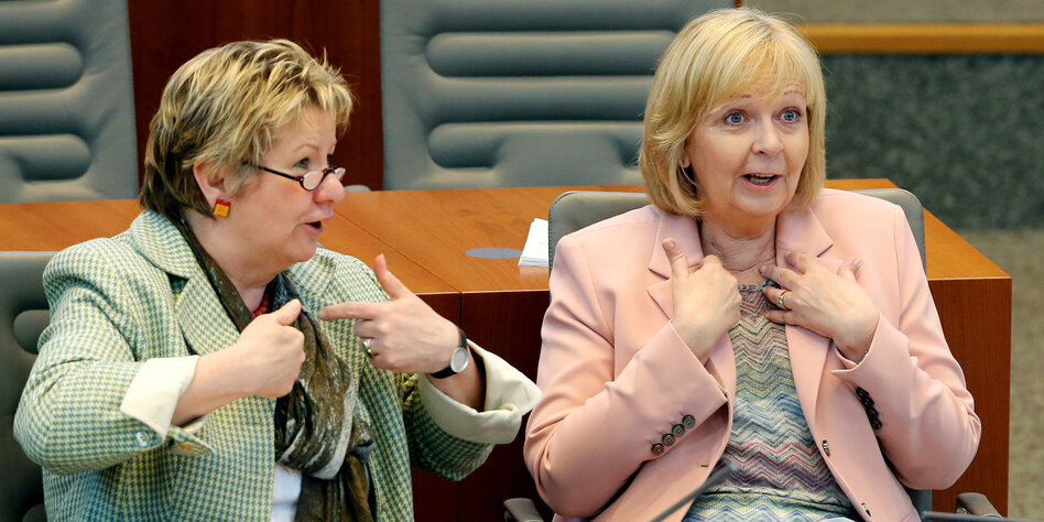 (IMG) Bild: Erstaunt über die Bestätigung im Amt? Doch nicht wirklich. Hannelore Kraft (re.) und Sylvia Löhrmann