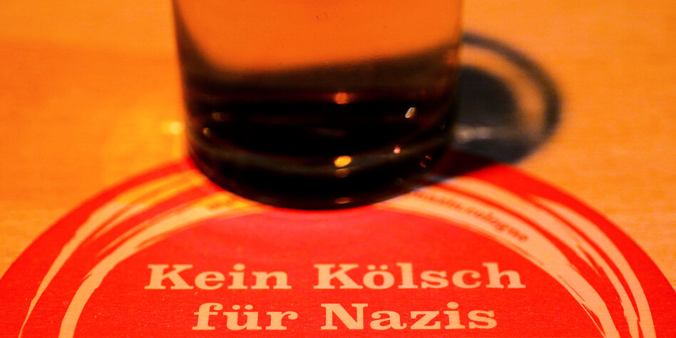 (IMG) Bild: Rotes Köln: 200.000 Bierdeckel der Kampagne „Kein Kölsch für Nazis“ wurden in Kneipen verteilt