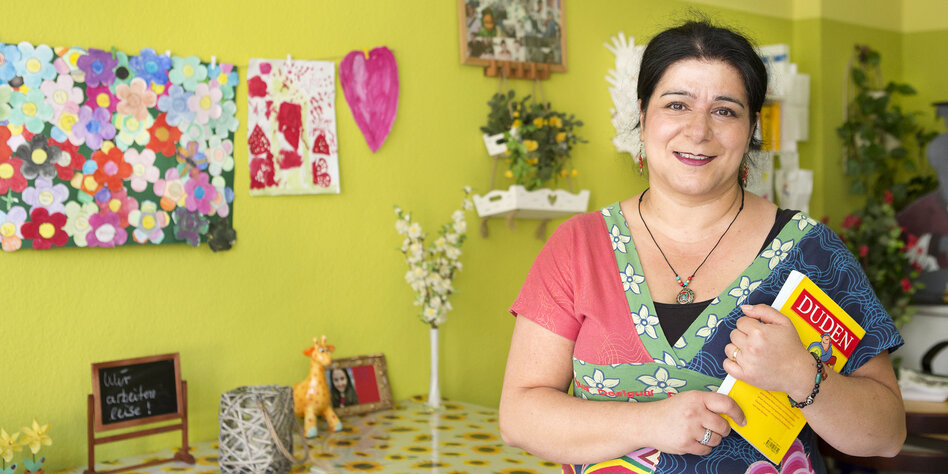(IMG) Bild: Die Neuköllner Nachhilfelehrerin Mahi Christians-Roshanai in ihrer Nachhilfeschule Maja