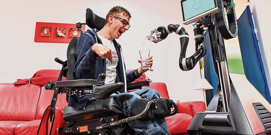(IMG) Bild: Dass ein Roboter Menschen mit Schwerbehinderung assistieren kann, ist im Alltag noch Zukunftsmusik. Im Krankenhaus bräuchten die Menschen Hilfe, die ihnen die Krankenkassen allerdings verwehren.